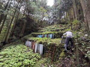 大丹波の湧水ワサビ田では、防獣ネットと警戒ロープの整備、そして春のポンプ掛けによる土づくりを重ね、栽培環境を段階的に整えてきました。夏の厳しい時期を越え、実生(みしょう)の株が息を吹き返すように葉を広げ、秋口から目に見えて勢いが出てきています。