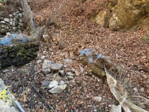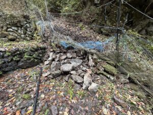 ここは沢に降りる道が崩れてしまい、復興が難しくなったそうです。以前一度案内していただいたことがありますが、あそこは“降りる”ではなく、“降りさせられる”ような崖でした。足場は脆く、落ちれば終わりに近い。師匠が直すことを諦めた理由が、現場を見れば痛いほど分かりました。