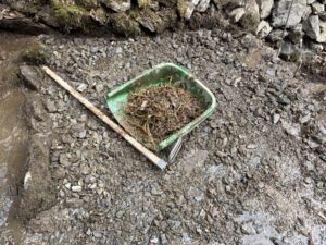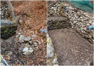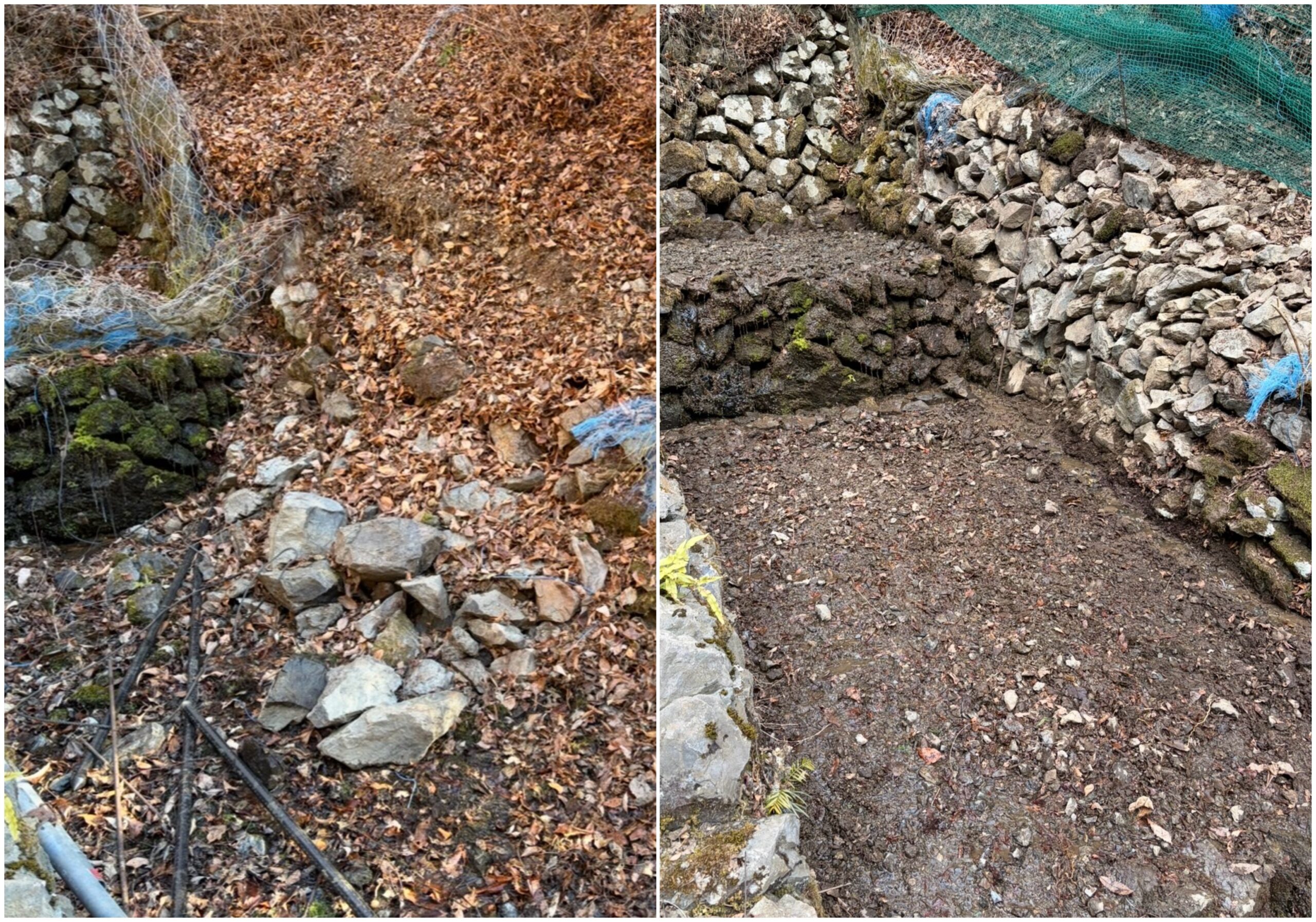 そこから約1週間、とにかく手を動かしました。崩れた石垣を汲み直し、長い間使っていなかったことで蔓延ってしまった木の根を抜き、詰まったゴミを取り除き、水の通り道を作り直す。たった数センチの高低差で水が変わるので、石は一つひとつ、置き直しては流し、また直す。地味で、終わりの見えない作業です。